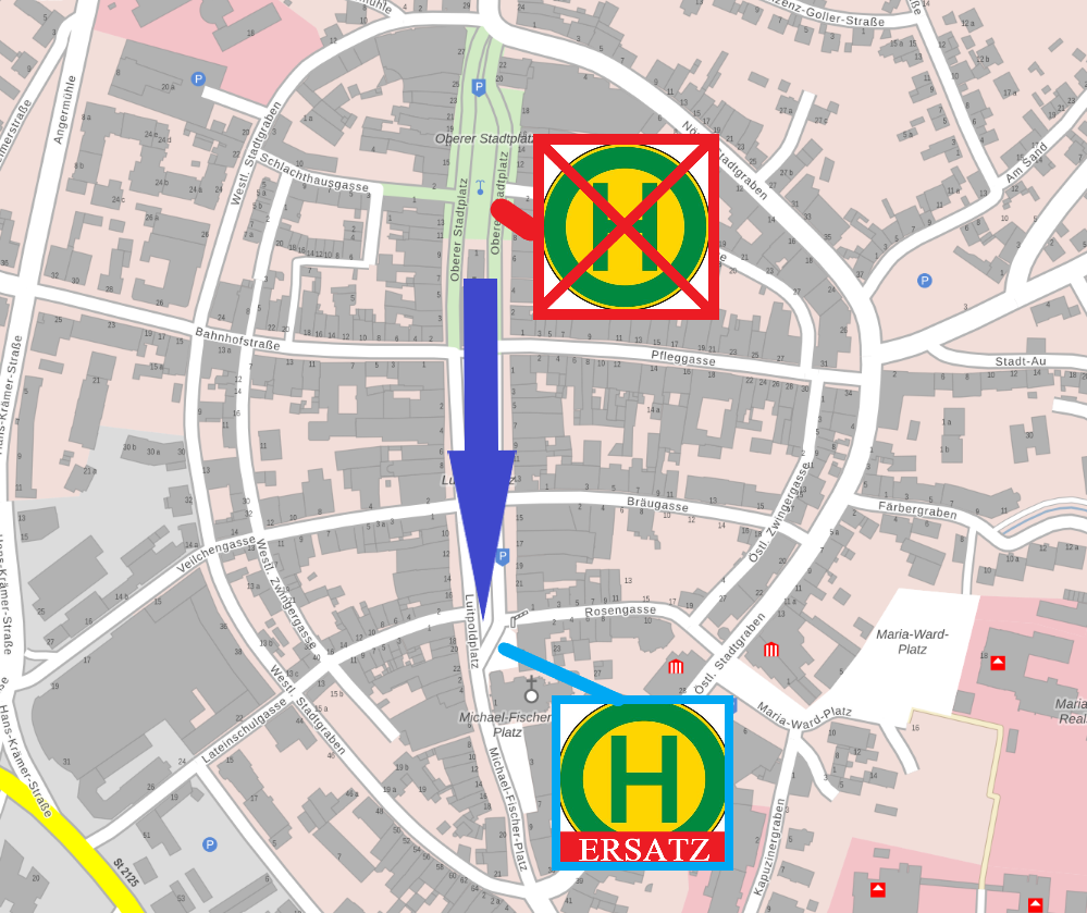Bitte nutzen Sie die naheliegenden Haltestellen.